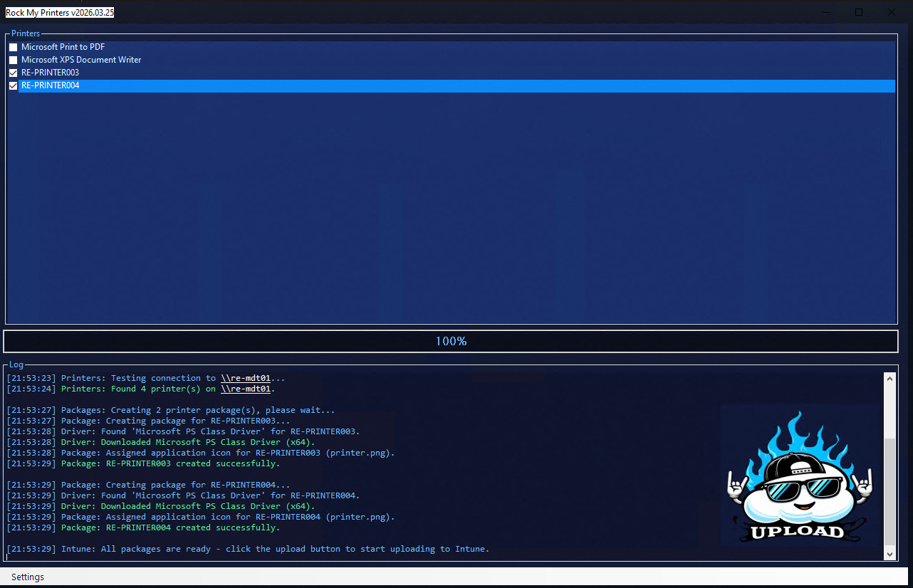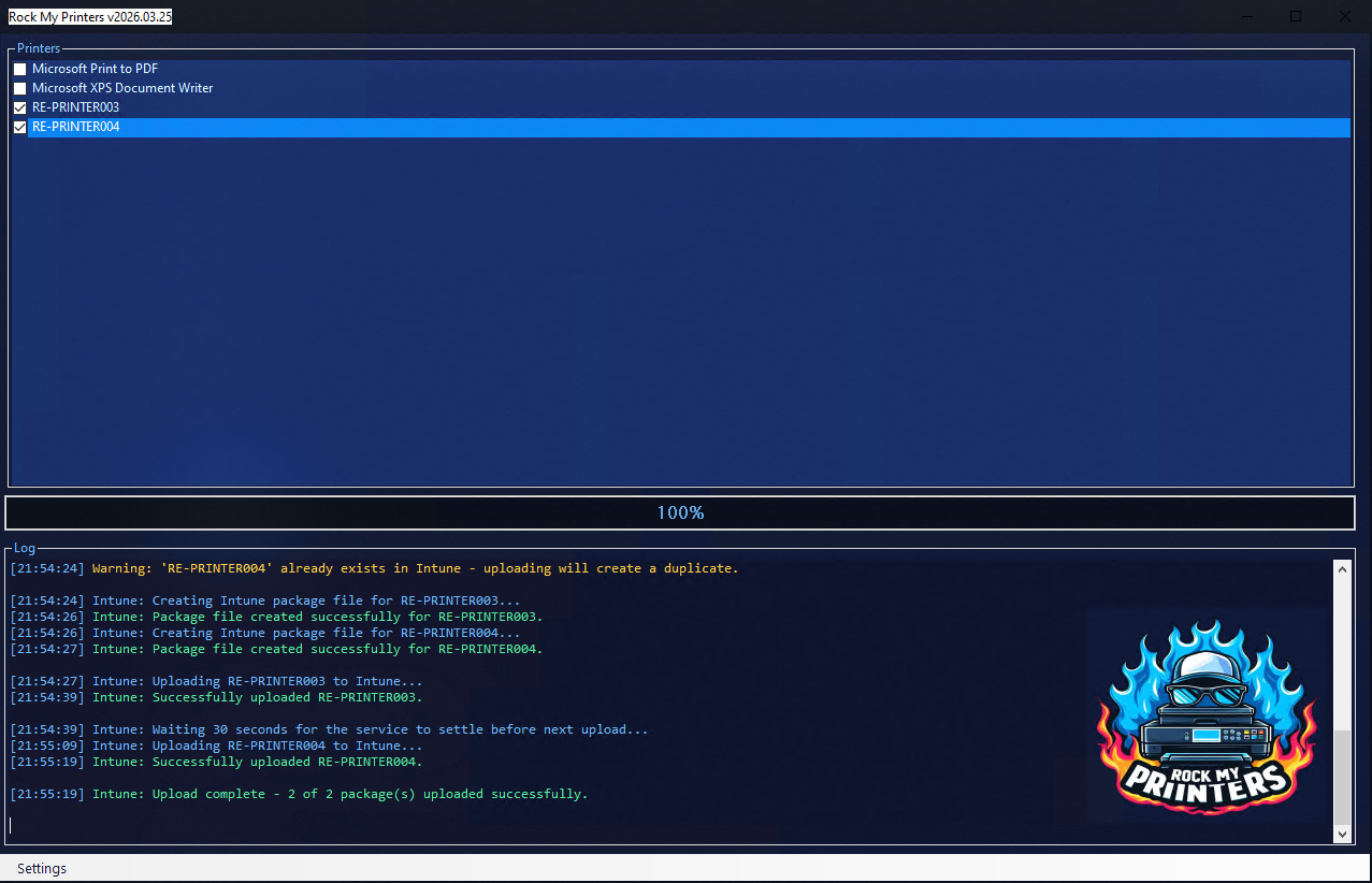 - Click: the Rock My Printers button to have them exported to Intune.